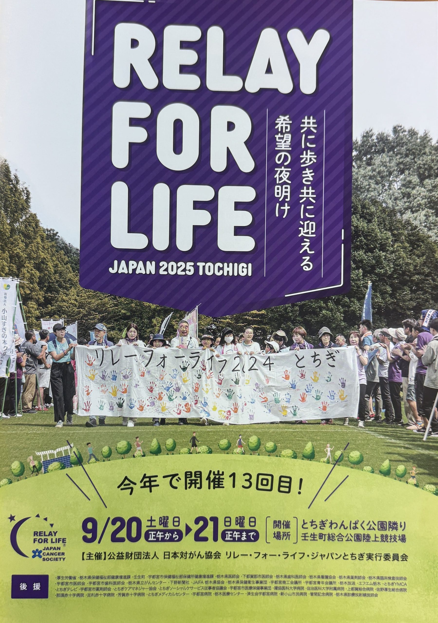 株式会社フレンドは、去る2025年9月20日(土)~21日(日)に壬生町総合公園陸上競技場で開催された、「リレー・フォー・ライフ・ジャパンとちぎ 2025」に協賛し、広告出稿という形で活動を応援いたしました。