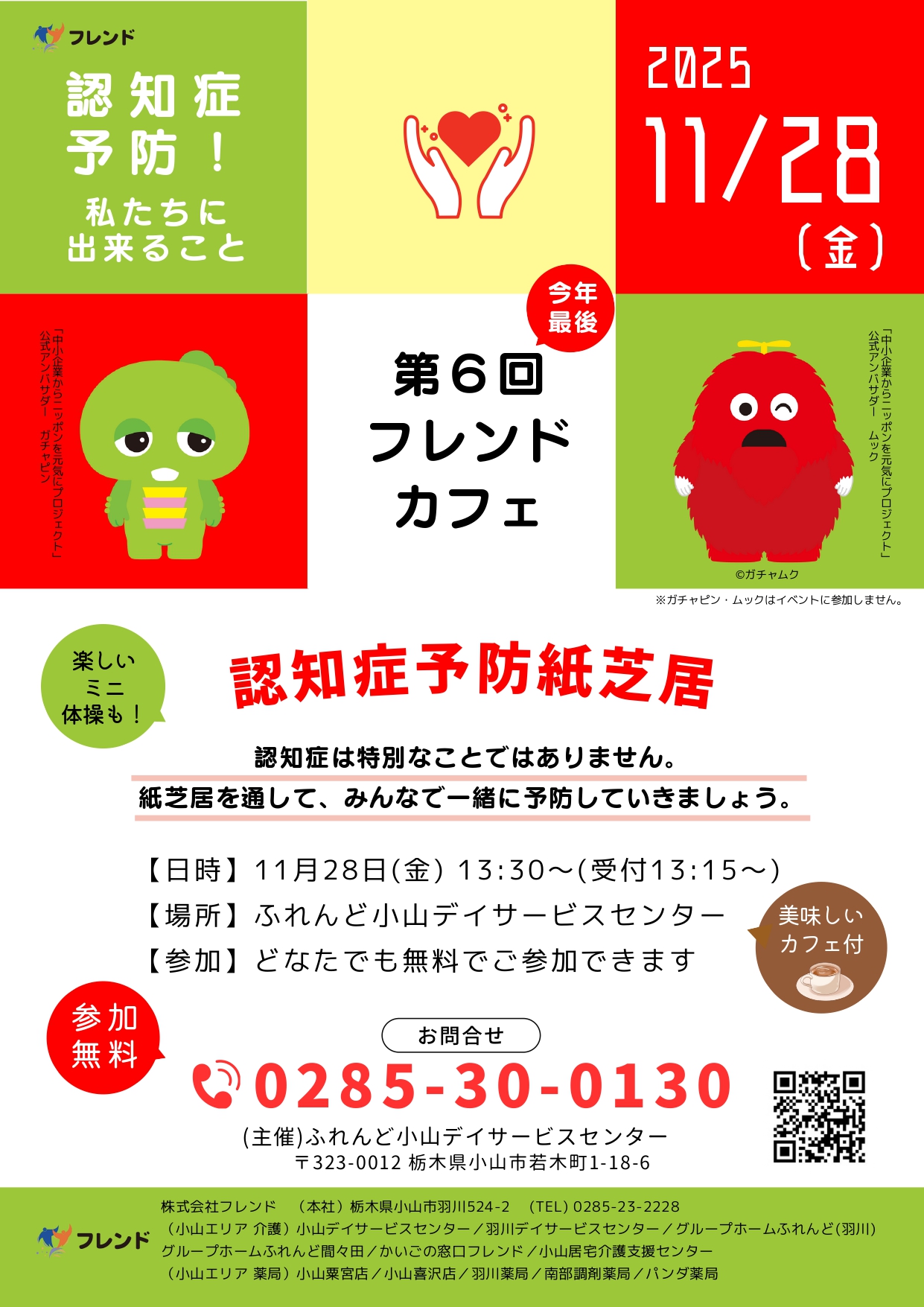 場 所: ふれんど小山デイサービスセンター(〒323-0012 栃木県小山市若木町1-18-6)