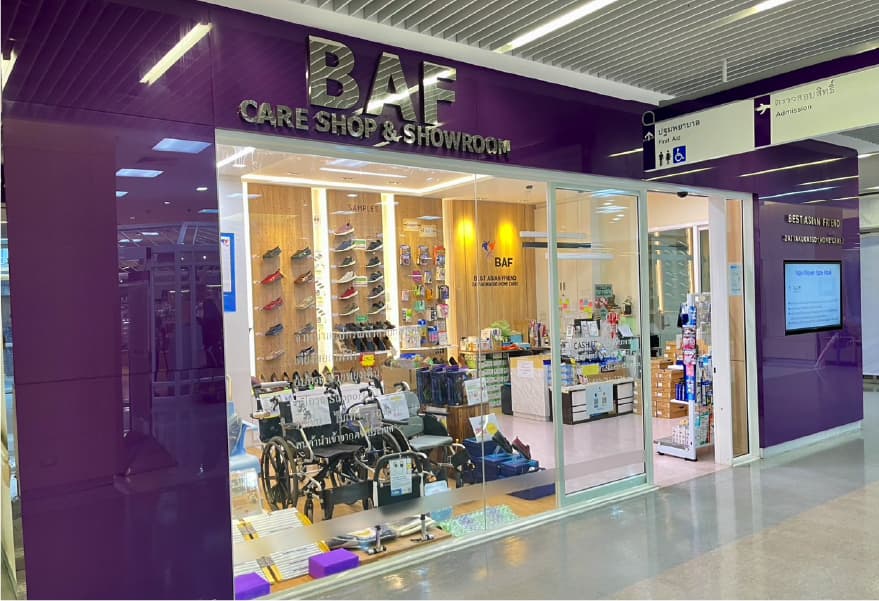 จำหน่าย และจัดแสดงสินค้า เช่น เตียงนอนไฟฟ้า หรือ รถเข็น ที่ถูกดัดแปลงและปรับให้สามารถบรรเทาความลำบากของครอบครัวผู้สูงอายุ หรือผู้ที่ไม่สามารถช่วยเหลือตัวเองได้ โดยมีการช่วยเหลือ เรื่องการฝึกใช้สมรรถภาพทางร่างกาย เพื่อให้ผู้เข้ารับบริการสามารถใช้ชีวิตประจำวันได้อย่างสะดวก